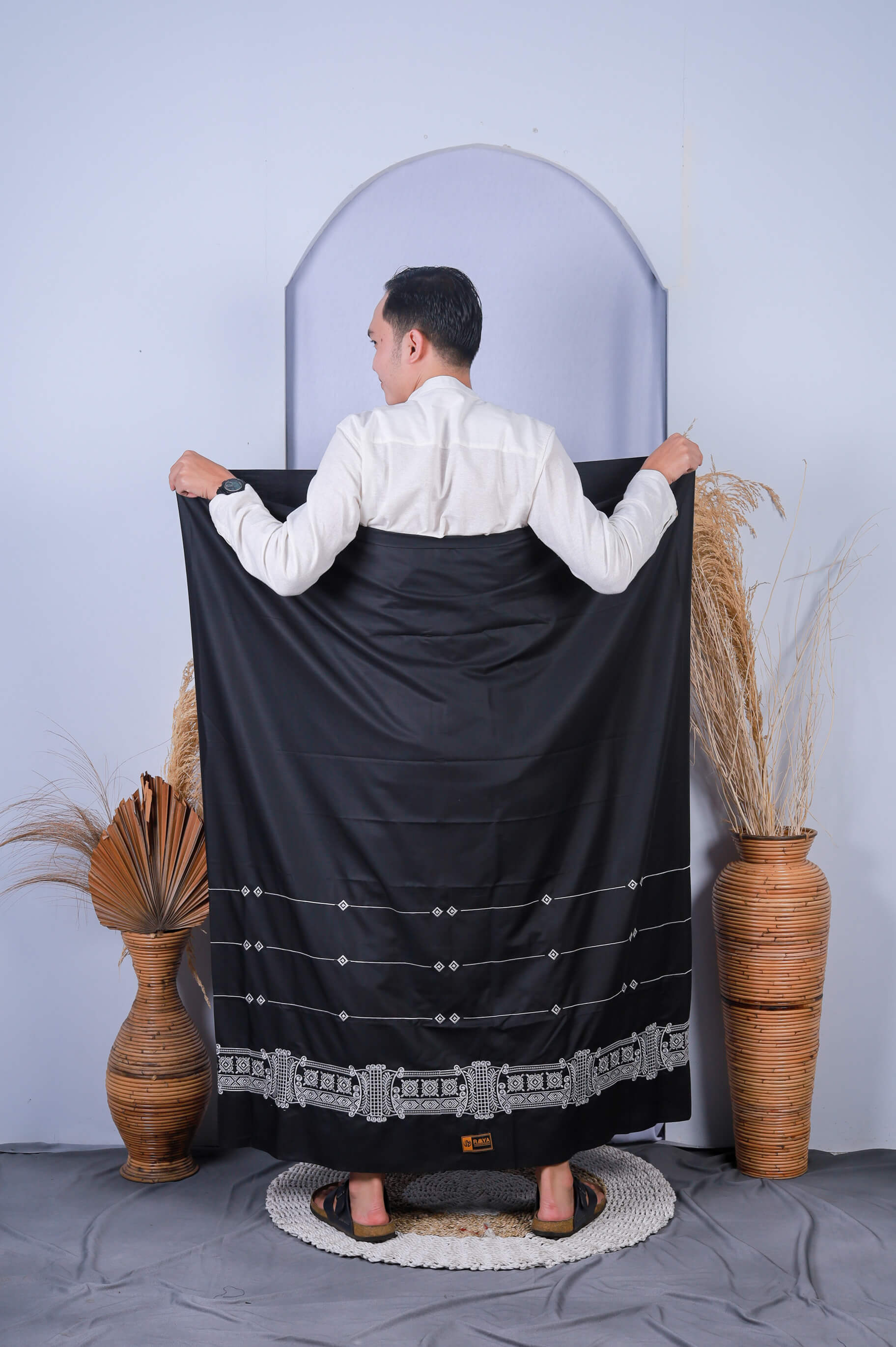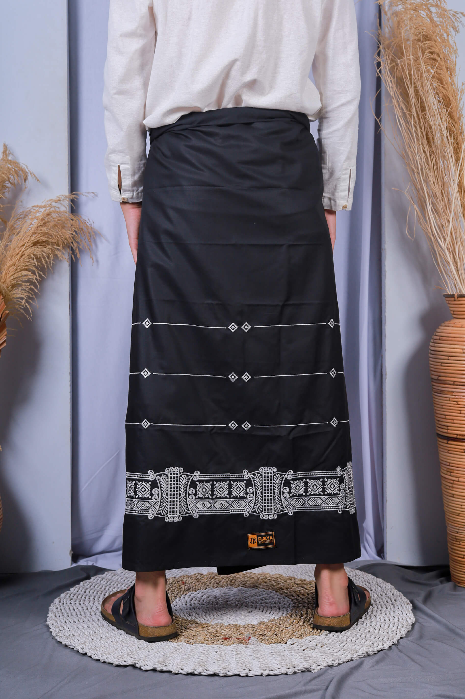 Raaya - Sarung Bordir Nuantara Pintu Aceh Hitam Gold