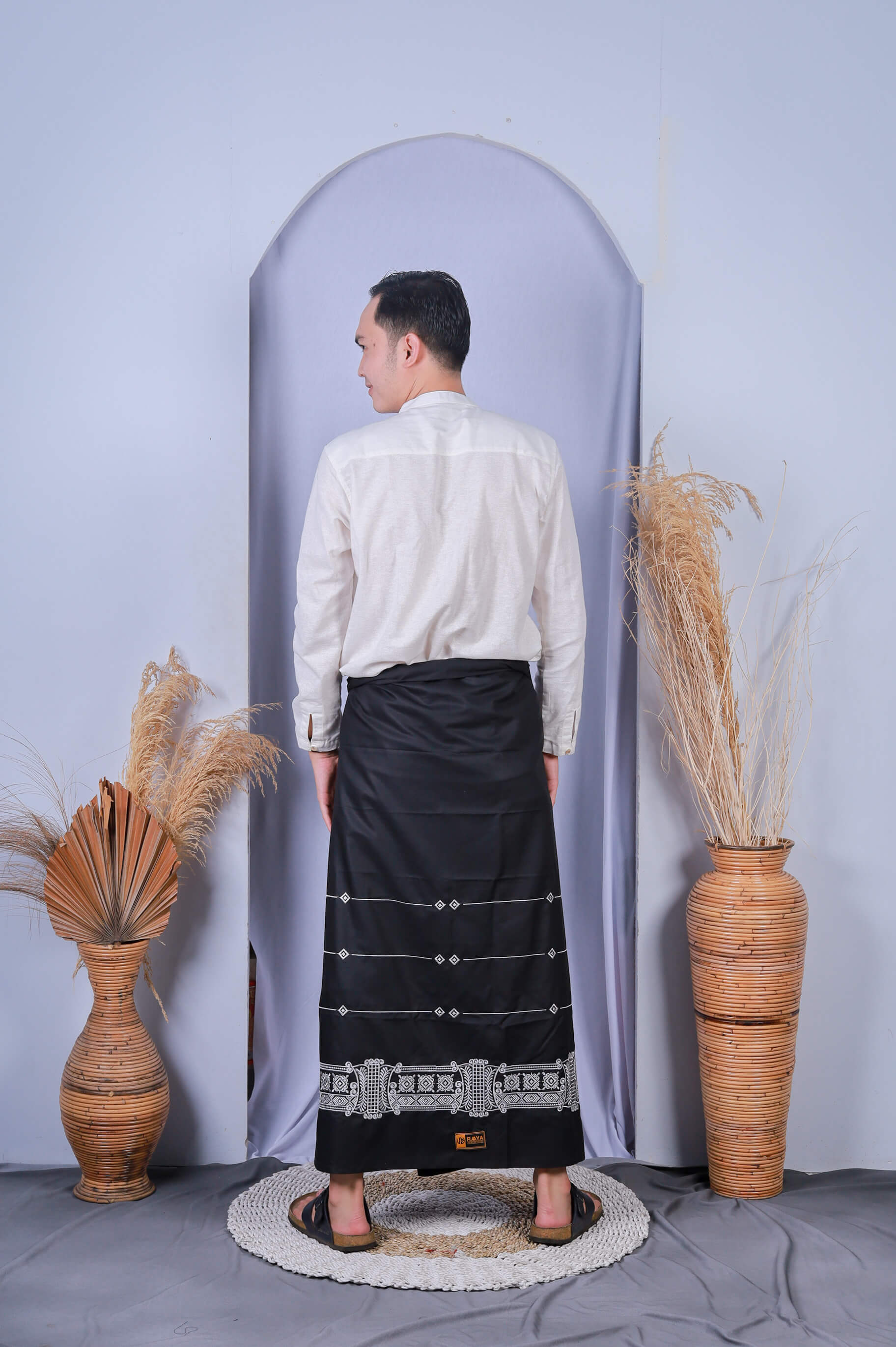 Raaya - Sarung Bordir Nuantara Pintu Aceh Hitam Gold